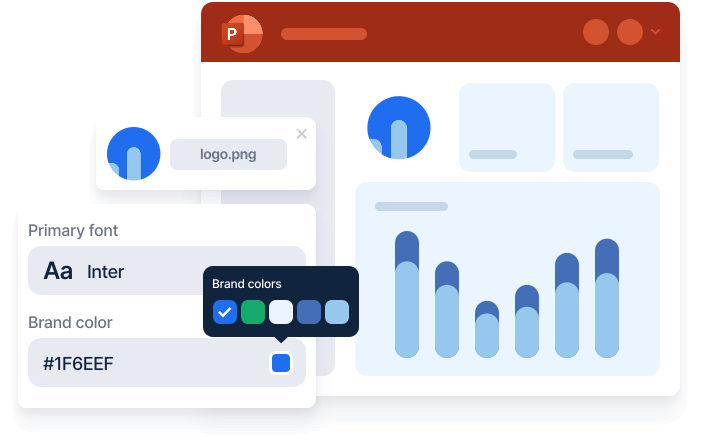 Simplify collaboration with centrally managed libraries for firm-approved slides, charts, and branded materials
