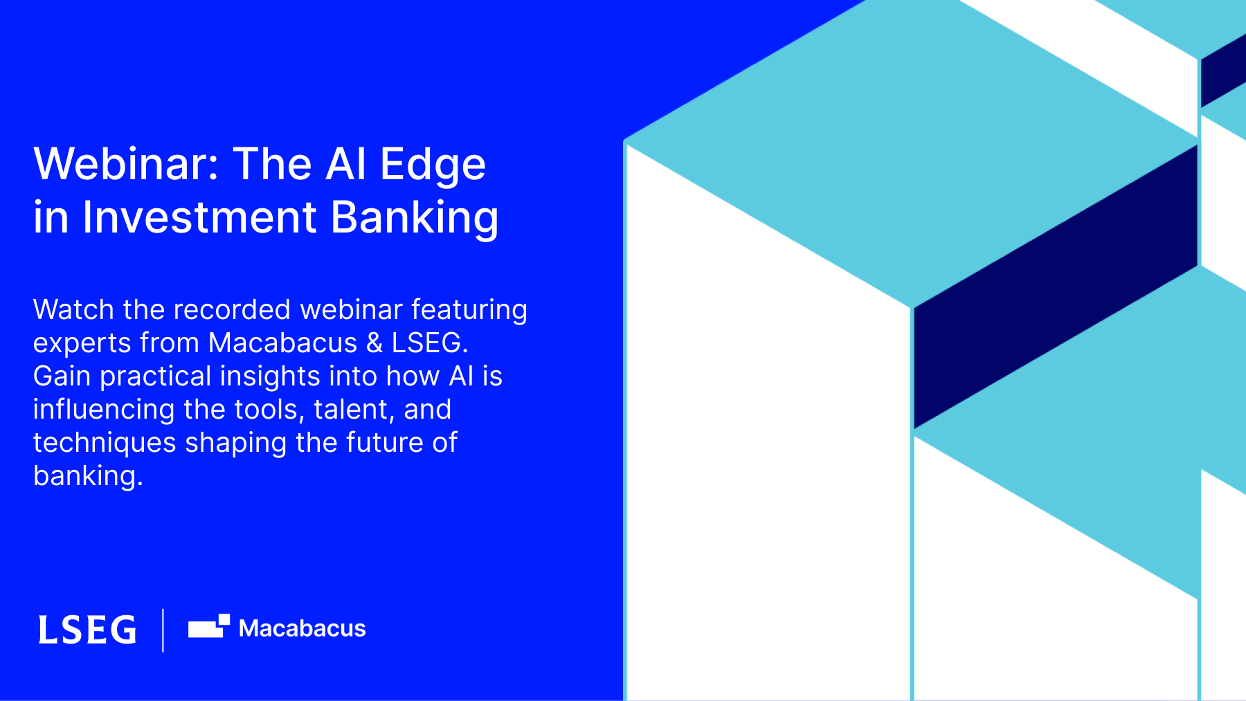 Watch the recorded webinar featuring experts from Macabacus & LSEG. Gain practical insights into how AI is influencing the tools, talent, and techniques shaping the future of banking.